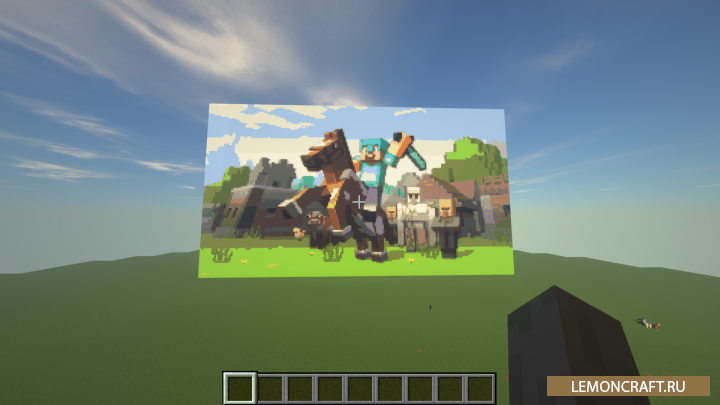 Мод на вставку изображений Image Mod добавляет в игру возможность вставки изображений в игру с помощью ввода нужных команд. Перенесенные с компьютера изображения будут выполнены в виде ванильных блоков создавая в игре красивые виды.