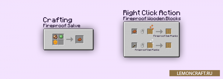 Мод на вулканит Extra Vulcanite добавляет в игру новый вид материала, вулканит, который не подвержен воздействию огня, а найти его можно в Нижнем мире. С помощью нового материала вы сможете создавать и улучшать броню и инструменты, которые получат защиту от огня. Кроме этого мод добавляет мазь, которая предназначена для защиты деревянных блоков от воздействия огня.